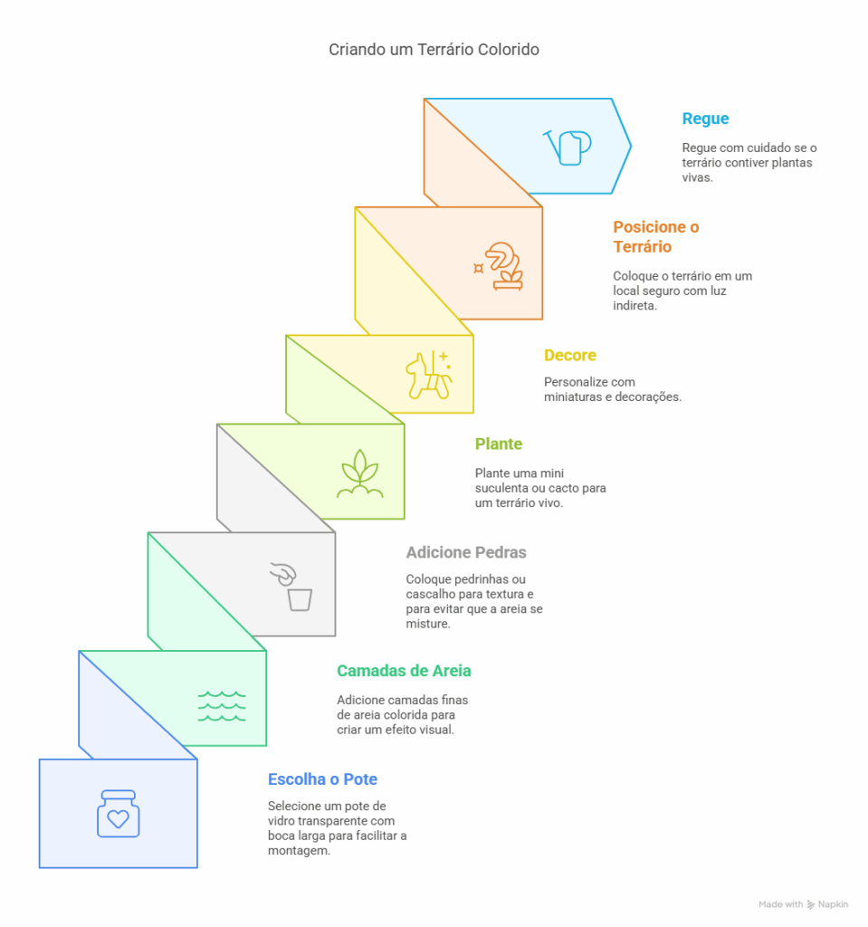 Seja um deserto de dinossauros, um jardim de fadas ou uma galáxia de pedrinhas, o terrário será muito mais do que uma decoração – será um símbolo de criatividade, aprendizado e conexão. Então, pegue aquele pote de vidro esquecido na cozinha, separe um punhado de areia colorida e deixe a magia acontecer.