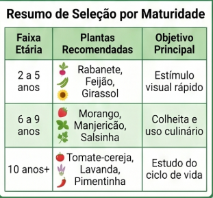 Não existe uma resposta única, mas existe uma orientação boa para cada fase. Crianças de 2 a 3 anos já conseguem regar com ajuda e adoram mexer na terra. De 4 a 7 anos, elas conseguem plantar sementes, acompanhar o crescimento e registrar observações simples. A partir dos 8 anos, já dão conta de cuidar de um vasinho quase sozinhas, com supervisão leve.